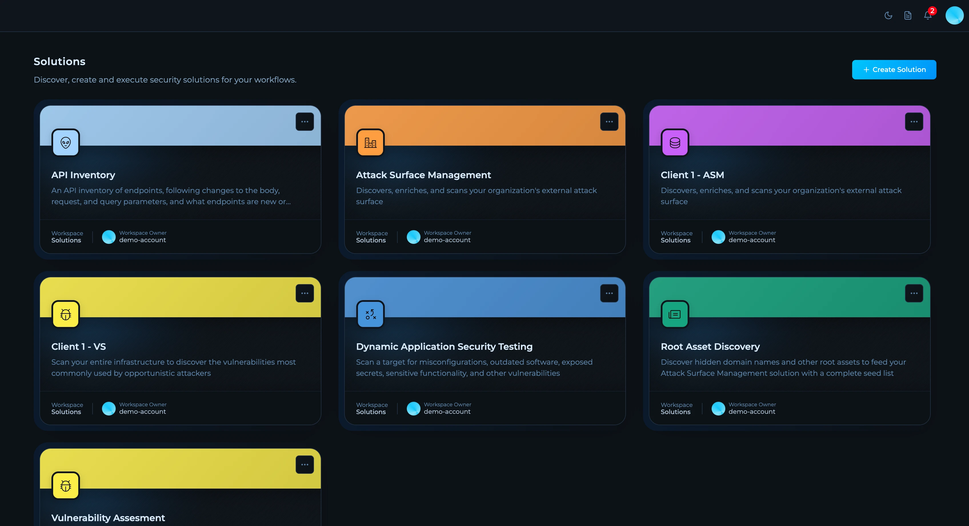 Choose a descriptive name that reflects the solution’s purpose (e.g., “API Inventory”, “Cloud Asset Discovery”, “Third-Party Risk Monitoring”).
