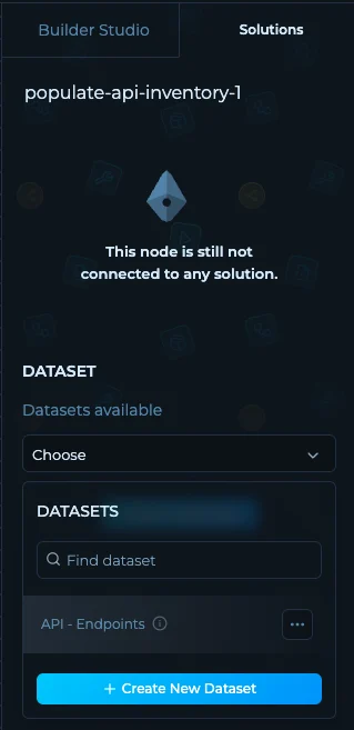 In the right sidebar, look for the Solutions tab. From the dropdown menu, select the dataset you created in Step 2. This links the node’s output directly to your dataset.