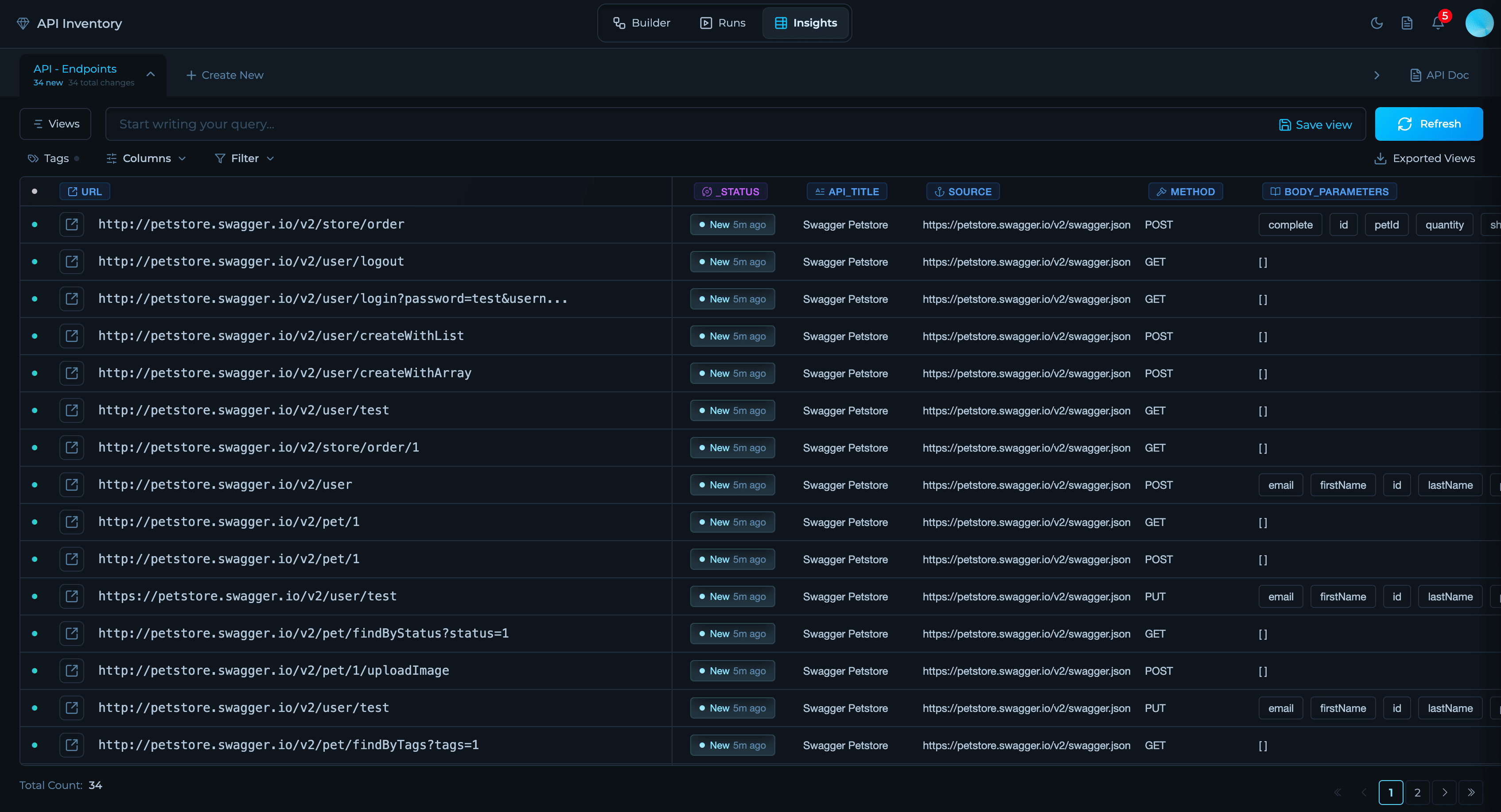In the Insights tab, you can see the data being ingested into the dataset with out-of-the-box filters, views and API.