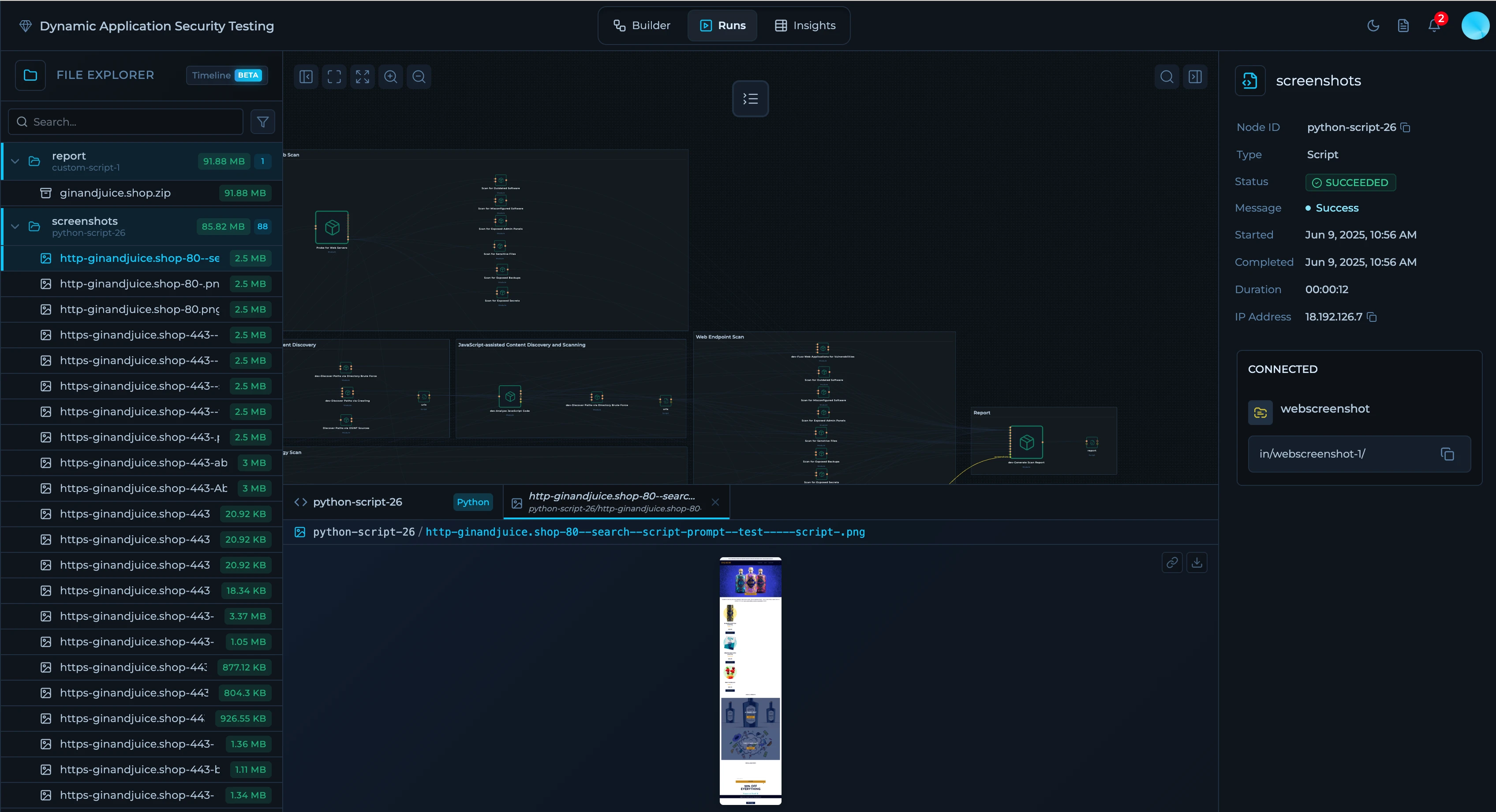 - Generate Scan Report: Compiles all findings, discovered assets, screenshots, and metadata into a comprehensive HTML report.